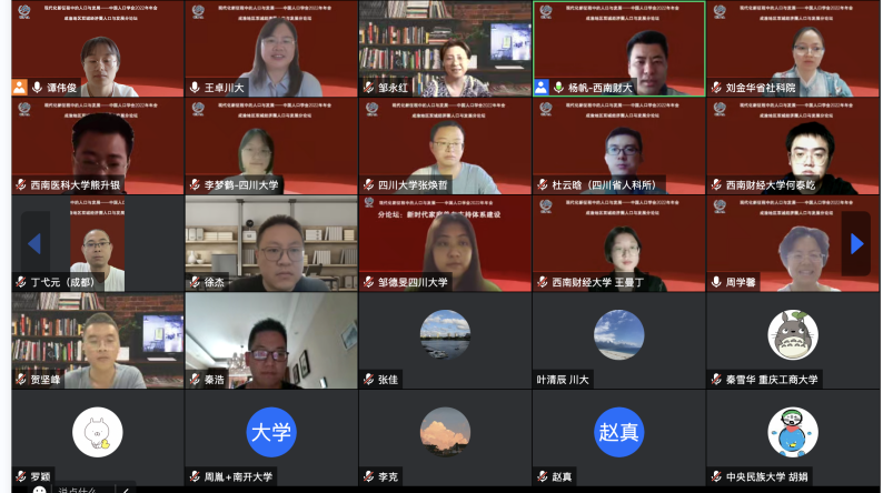 中国人口学会2022年年会于2022年7月21日开幕,各分论坛于线上线下分别召开。7月23日全天,实验室与西南财经大学社会发展研究院、四川大学中国西部反贫困研究中心、重庆市委党校经济社会发展研究所、重庆工商大学成渝地区双城经济圈协同发展中心联合举办的“成渝地区双城经济圈人口与发展”分论坛于线上顺利举办。会议分上午和下午两个半场。上午的会议由西南财经大学王学义教授主持,共6名学者进行了主题发言,重庆工商大学成渝地区双城经济圈协同发展中心陈富永研究员,中国人口学会副会长、西南财经大学杨成钢教授分别进行点评。下午的会议由西南财经大学杨帆教授主持,共7名学者进行主题发言,重庆市委党校副校长周学馨教授、四川大学王卓教授分别进行了点评。会议共持续近7个小时,80余人线上参会。